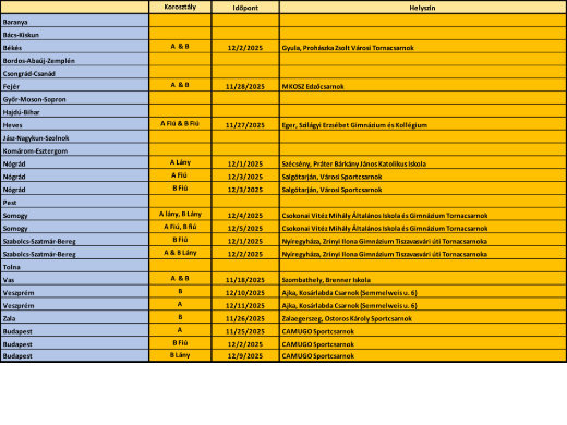Itt közöljük a napról-napra frissülő B33 Diákolimpia vármegyei döntőinek helyszínei és időpontjait. A táblázatot folyamatosan frissítjük, ahogy beérkeznek az újabb
