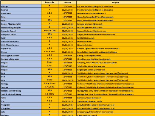 Itt közöljük a napról-napra frissülő B33 Diákolimpia vármegyei döntőinek helyszínei és időpontjait. A táblázatot folyamatosan frissítjük, ahogy beérkeznek az újabb